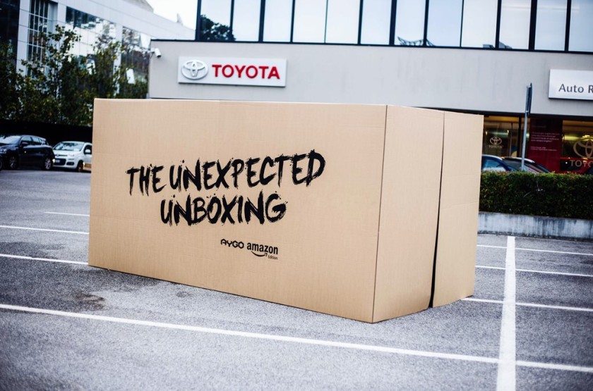 si è svolta la consegna della prima delle 50 vetture disponibili online sul sito Amazon.it fino al 31 dicembre 2015. La prima Toyota AYGO Amazon Edition è uscita da un box di cartone brandizzato Amazon e Toyota e consegnata oggi, al suo nuovo proprietario, il Sig. Stefano Sabelli, presso il Concessionario Auto Royal Company di Roma. Una consegna speciale pensata per il primo acquirente che dopo circa due settimane dalla prenotazione della vettura on line ha potuto ritirare la sua auto.