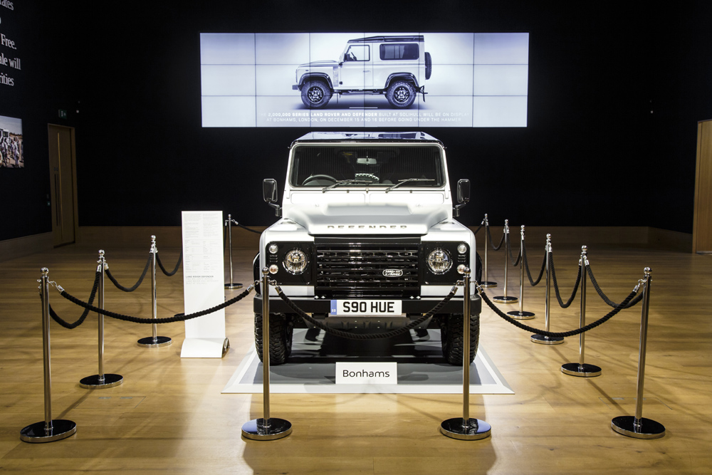 Il duemilionesimo delle Serie Land Rover e dei Defender prodotti nello storico stabilimento di Solihull dal 1948, è stato venduto ad un offerente del Qatar. Lo speciale Defender è stato assemblato a maggio 2015 da una squadra composta da Ambasciatori del Brand e da personaggi legati alla storia Land Rover, inclusi Bear Grylls, Virginia McKenna OBE e Stephen and Nick Wilks, figli dei fondatori della Società.