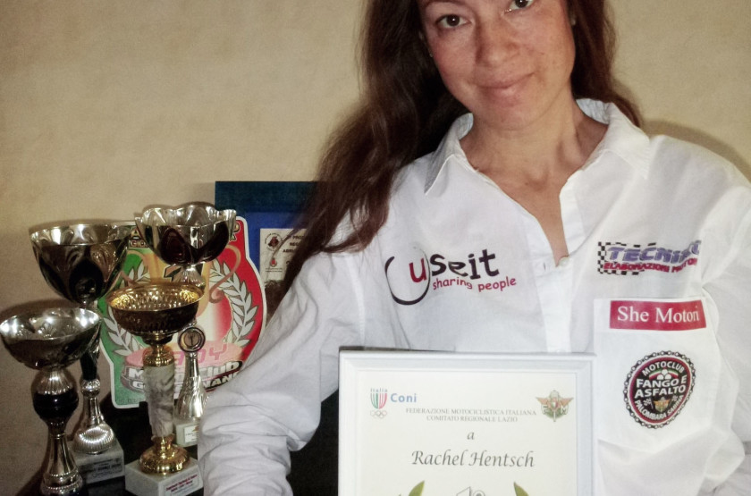 Appassionata di enduro amatoriale dal 2010, dopo 5 anni di “passeggiate tranquille” (si fa per dire!), incoraggiata dai suoi amici motociclisti e spronata dalla sua passione per le sfide, Rachel ha deciso di compiere il grande passo e buttarsi nel mondo dell’agonismo, iscrivendosi quindi al Campionato Regionale Lazio.