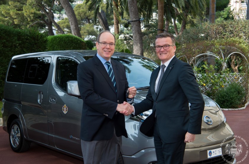 Ricevuti dal Principe Sovrano di Monaco, S.A.R. il Principe Alberto II, nell’ambito della cerimonia di consegna tenutasi a Palazzo, i due Nissan e-NV200 cinque posti Evalia saranno utilizzati all’interno della storica proprietà – residenza del Principe e della sua famiglia – come veicoli per la consegna e il trasporto di beni e di persone.