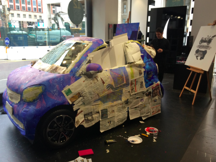 I veri artisti ovviamente ne sanno basta guardarsi intorno e osservare ma le soppresse non finisco anzi continuano in Via Durini, pieno centro Milanese, presso il Brian & Berry Building…una smart è in vetrina in piena attività artistica, i suoi colori trasmettono relax e sogno, così a noi pare.