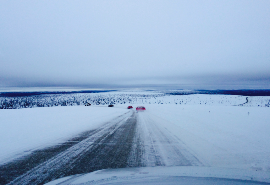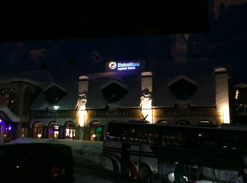 Arrivata fino qui per provare le gomme Nokian,  pneumatici per autovetture, camion e macchinari pesanti sono venduti soprattutto in zone caratterizzate da neve, boschi e variazioni climatiche che rendono difficoltose le condizioni di guida. In questo paesaggio che più bianco non si può prende il via la nostra experience. Arrivata a Ivalo si raggiunge l’uscita a piedi qui difficilmente troverete traffico…un bus con gomme chiodate ci attende per portarci al nostro alloggio: l’hotel Riekonlinna.