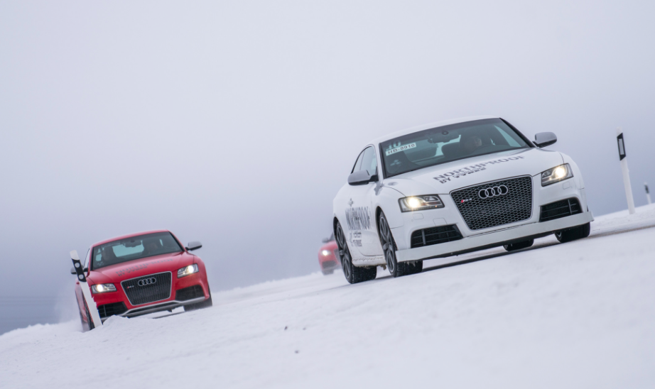 Nella seconda prova sempre a boro di Audi si entra nel circuito notevolmente ghiacciato con delle Audi Rs4 tutte quante equipaggiate con il nuovo pneumatico WR A4 con ecco qui il drift è stato un divertimento in totale sicurezza.