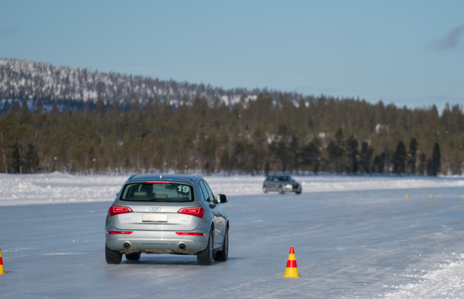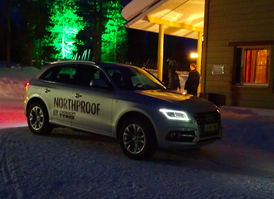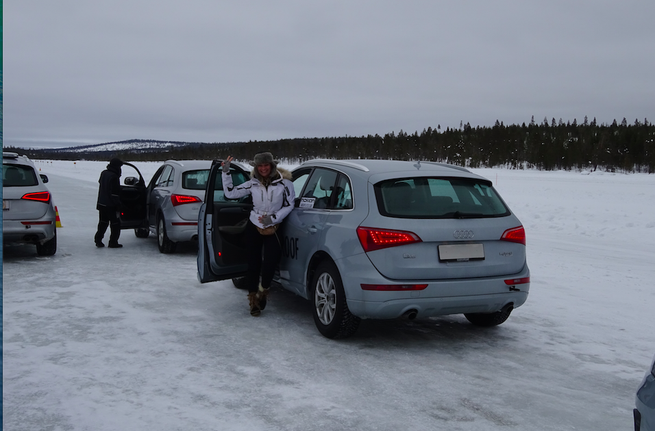 Proprio qui siamo saliti a bordo dell’Audi Q5, in realtà altre Q5 erano equipaggiate con gomme concorrenti , le abbiamo provate tutte ma la numero 17 è quella che si comportata su fondo ghiacciato, sotto probabilmente si nascondeva un lago, e ad una velocità di 50 km/h in paragone alle altre ha frenato nel minor spazio possibile..beh la differenza si è sentita a voi qualche scatto live.