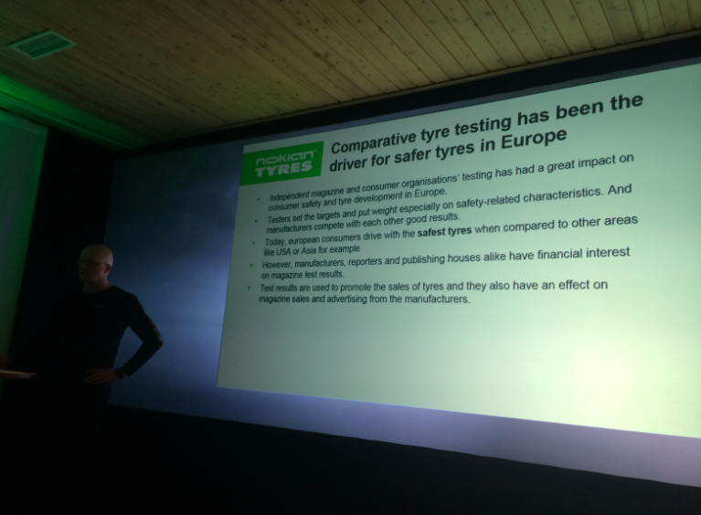 Svegliarsi con così bianco intorno fa strano, non sono abituata anche se i monti sono vicini a dove abito ma qui è altra cosa… In molti mi hanno chiesto quanto c’è di vero sulle ultime news divulgate riguardo a Nokian che hanno visto la società finlandese  nel bel mezzo di quella che può definirsi una “pneugate”, personalmente ho letto quanto riportato dalla stampa finlandese – italiana in un post precedente http://www.shemotori.it/2016/03/15/gommegate-nokian-tyres-risponde/  più che la notizia sono stata colpita dai commenti della gente, del fatto che in moltissimi hanno sottolineato le qualità e molteplici aspetti positivi, mi sembrava giusto dirlo, dubito che siano profili falsi…se cercate in internet li vedrete anche voi. Ma noi siamo qui per conoscere Nokian e le sua gomme. Ad introdurre la conferenza stampa Antti-Jussi Tähtinen marketing e comunicazione Nokyan Tyres