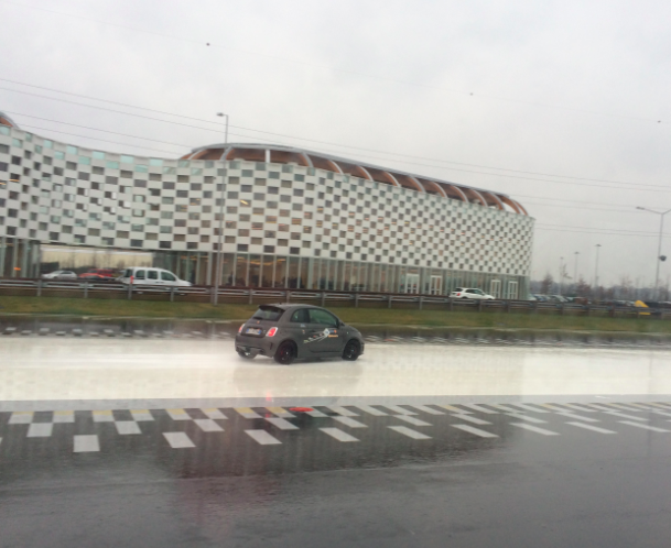 Successivamente, a meta mattinata, siamo passati alla pratica. Aiuto. Ho scelto all’inizio una 500 Abarth poiché volevo provare il corrispettivo della mia fiat 500 ma un po’ piu potente. Il primo esercizio è stato da infarto a pensarlo: riuscire a tenere la traiettoria in caso di sovrasterzata.