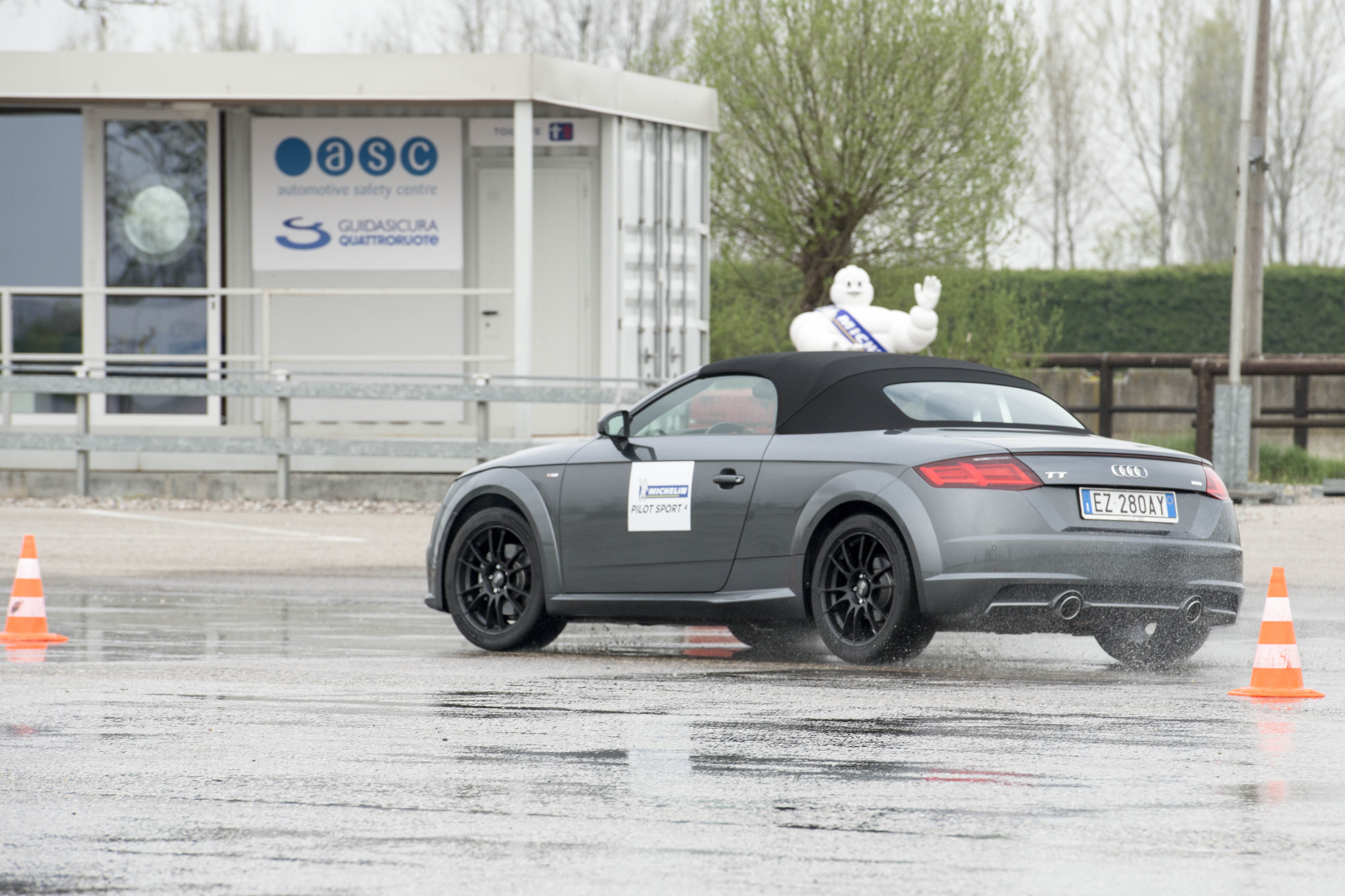 La serie dei test previsti viene fatta con vetture della casa dei quattro anelli, dalla Audi A4 wagon alla TT alla A3. Attraverso queste prove abbiamo potuto verificare le prestazioni e i livelli di sicurezza e handling del pneumatico Pilot Sport 4 su strada asciutta e bagnata ad altà velocità.