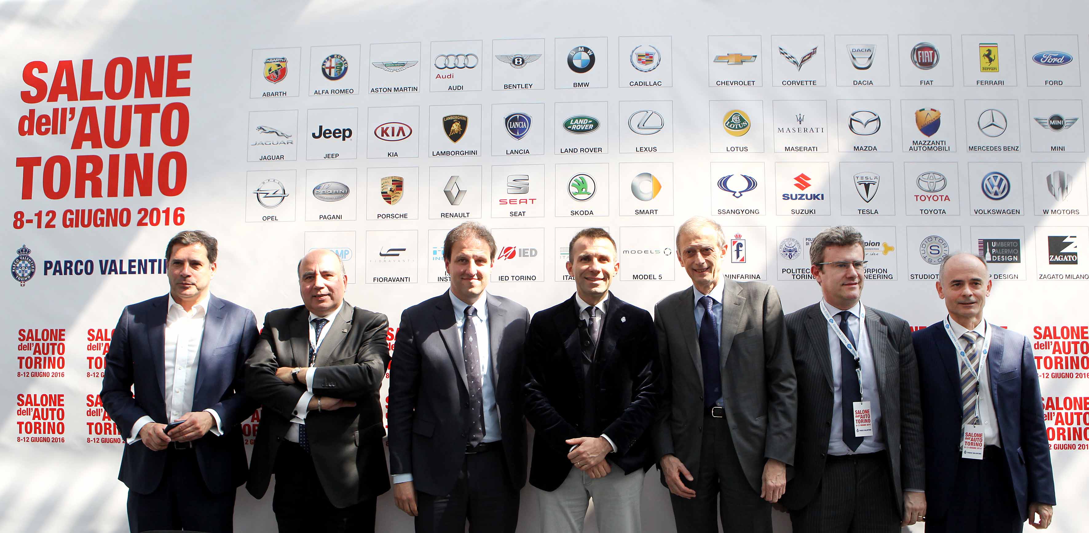 A 50 giorni esatti dall’inaugurazione questi i Brand che parteciperanno al Salone dell’Auto di Torino Parco Valentino, che si terrà dall’8 al 12 giugno 2016: Abarth, Alfa Romeo, Aston Martin, Audi, Bentley, BMW, Cadillac, Chevrolet, Corvette, Dacia, Fiat, Ferrari, Ford, Infiniti, Jaguar, Jeep, Kia, Lamborghini, Lancia, Land Rover, Lexus, Lotus, Maserati, Mazda, Mazzanti Automobili, Mercedes-Benz, MINI, Mitsubishi, Opel, Pagani, Porsche, Renault, SEAT, ŠKODA, Smart, SsangYong, Suzuki, Tesla, Toyota, Volkswagen, W Motors, oltre ai Centri Stile: Cecomp, Fioravanti, IDEA Institute, IED Torino, Italdesign, Model 5, Pininfarina, Politecnico Torino, Skorpion Engineering, Studio Torino, Up Design, Zagato Milano. Sulla pedana n. 1, dedicata alla vincitrice del concorso internazionale Car of the Year, sarà esposta l’Opel Astra. Sono ancora in corso trattative con altre Case automobilistiche la cui adesione verrà comunicata successivamente.