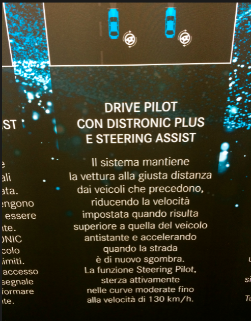 Mentre tra le tecnologie intelligenti in prova anche lo SPEED LIMIT PILOT, che adatta automaticamente la velocità in base ai limiti, e il REMOTE PARKING PILOT, per parcheggiare l’automobile dal proprio smartphone.