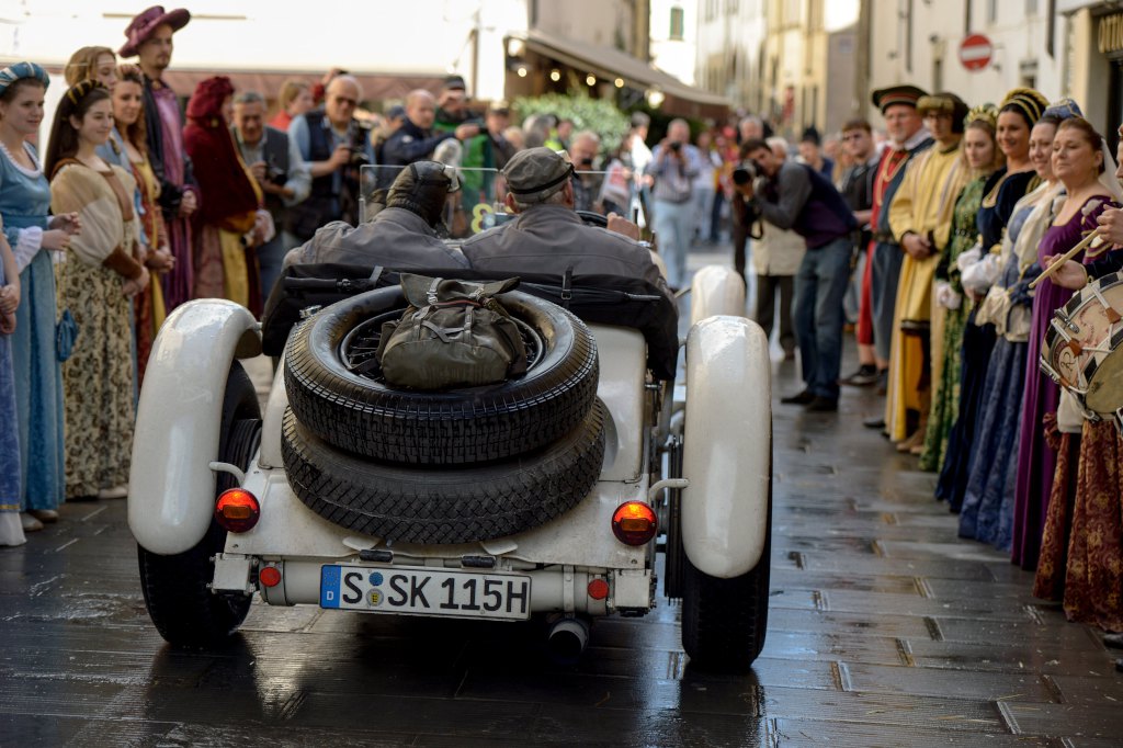 Le auto d’epoca provengono dalla collezione della Casa di Stoccarda e rappresentano simbolicamente tutte le vetture della Stella che presero parte alla competizione storica.