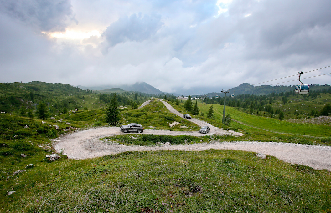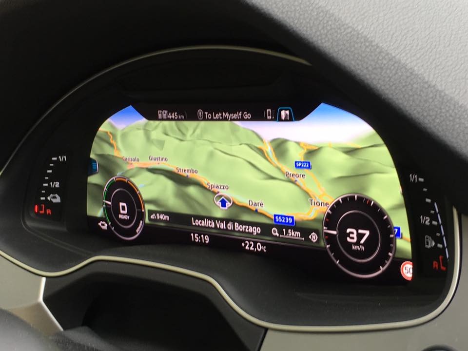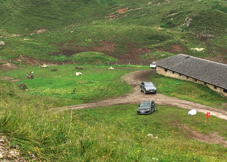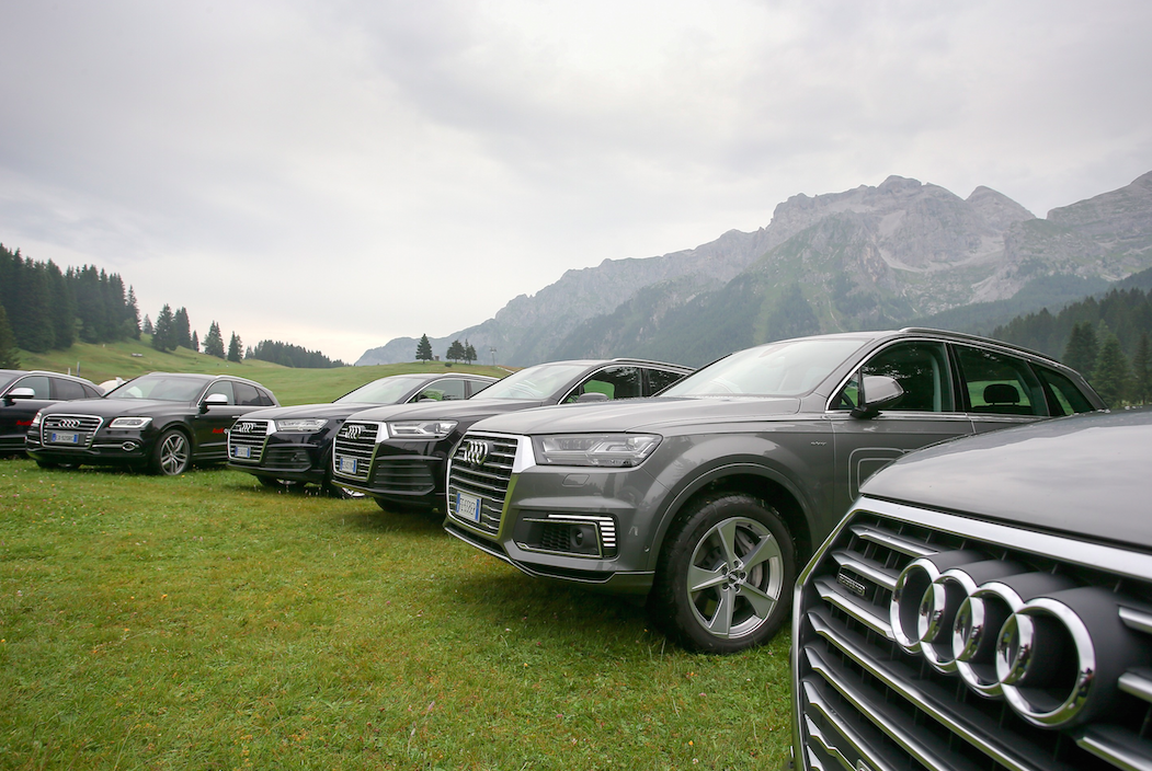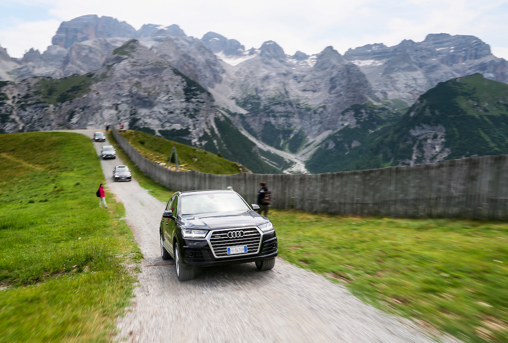 La pace ci circonda, alla natura un applauso affiora tra le rocce come una stella alpina infinitamente cercata. Abbiamo messo a dura prova la nostra resistenza ma passiamo un poi anche alla parte motori che ci guida…in questa bellissima location. Le dolomiti del Brenta sono terreno ideale per testare la capacità della trazione quattro di Audi, e quindi cosa si fa?  Eccoci al volante di una Audi Q7 e-tron e si sale ad alta quota.