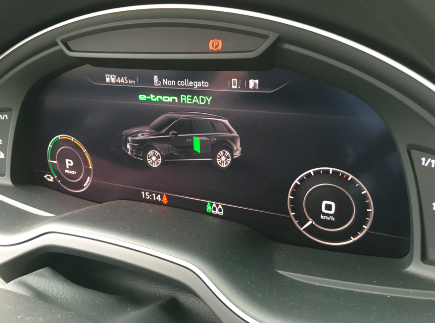 A bordo l’abitacolo della Audi Q7 e-tron quattro, oltre a essere il più grande del segmento, può essere personalizzato grazie a una ricca offerta di dotazioni. Anche display e comandi sono un punto di riferimento; l’Audi virtual cockpit e il sistema MMI, entrambi di serie, si presentano completamente ripensati per il nuovo modello. Tutti i comandi sono semplici da utilizzare e hanno una logica intelligente, e questa tecnologia sotto i nostri occhi ci piace. La sua potenza complessiva è di 373 CV, la coppia complessiva di 700 Nm, non abbiamo testato, ma i dati confermano uno scatt0 da 0 a 100 km/h in 6,0 secondi.