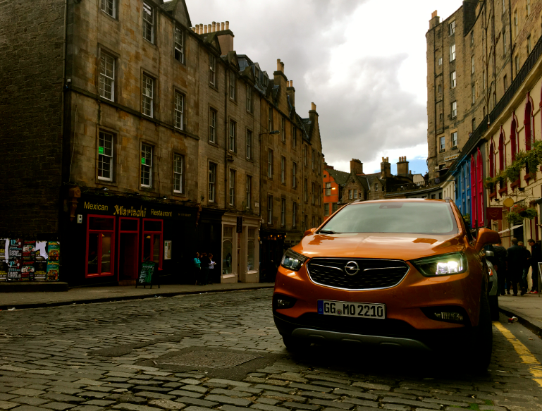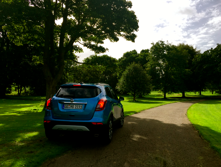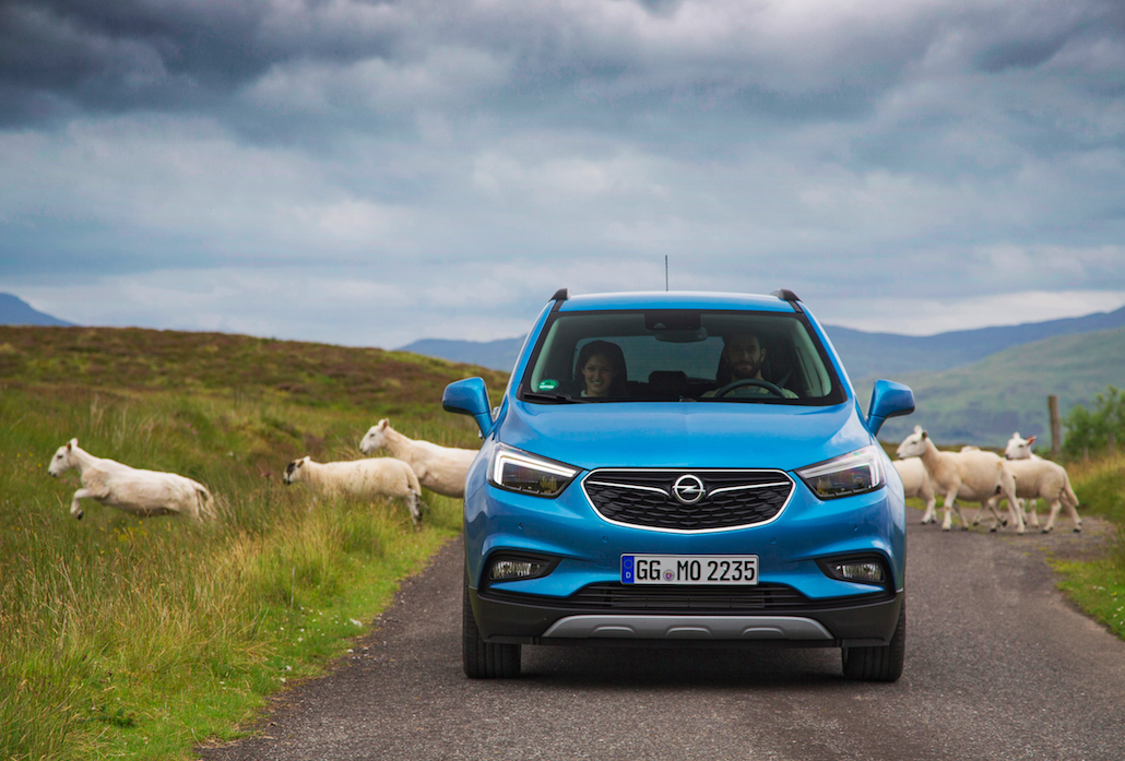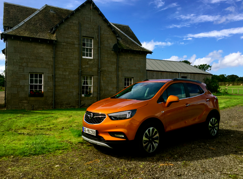 In Scozia, keep left, on the road al volante della nuova Opel Mokka X.
