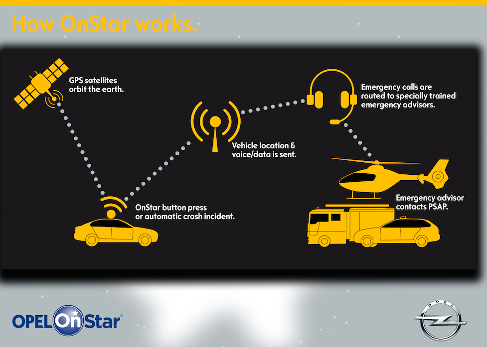 L’angelo custode di Opel è attivo 24 ore su 24, 7 giorni su 7 ed è disponibile premendo un semplice tasto. Se si attiva un airbag, Opel OnStar viene avvisato automaticamente e l’operatore contatta i servizi di emergenza.