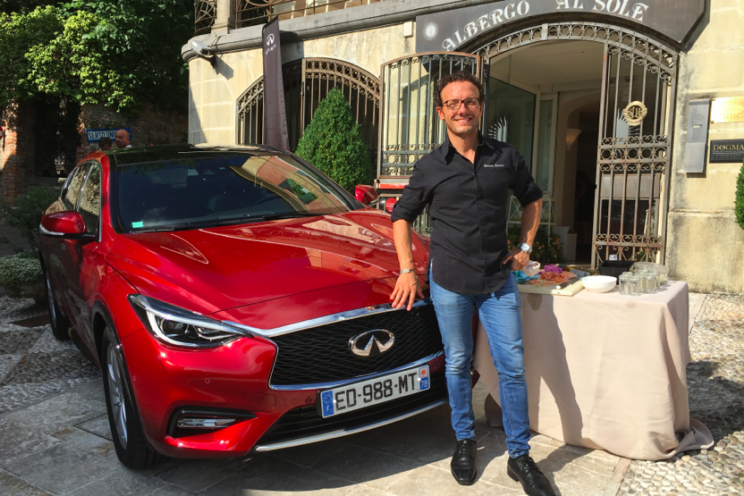 Succede ad Asolo al due stelle Michelin dell’Albergo Al Sole: le auto si trasformano in fornelli per lo chef stellato Simone Zanoni, chef del ristorante “Hotel George V2” a Paris, che si mette prima alla guida e poi alla cucina per stupire con un piatto semplice, pensato e buono per tutti: salmone cotto “a motore” dell’Infiniti QX30, nuovo crossover medio di categoria premium.
