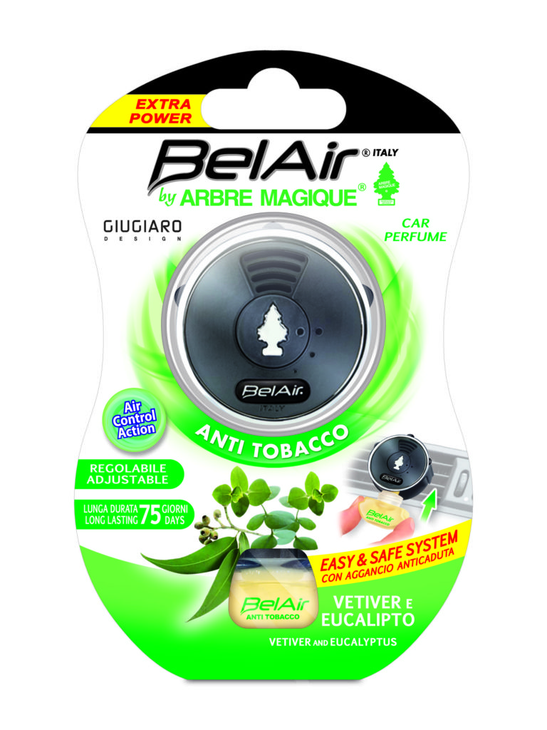 Lanciato nel 2011, BELAIR® GIUGIARO si è affermato come profumatore di design leader per la sua superiorità estetica, perché si integra perfettamente nel cruscotto, simulando con la sua forma circolare gli strumenti di governo dell’auto.