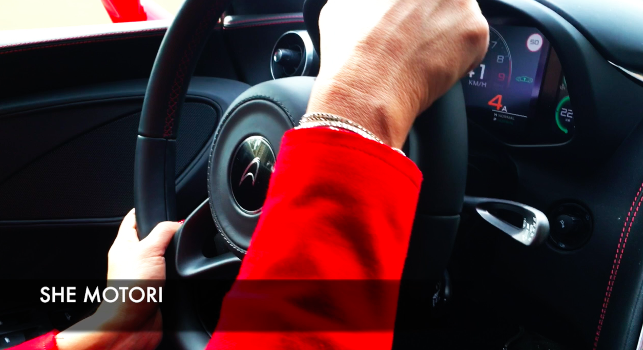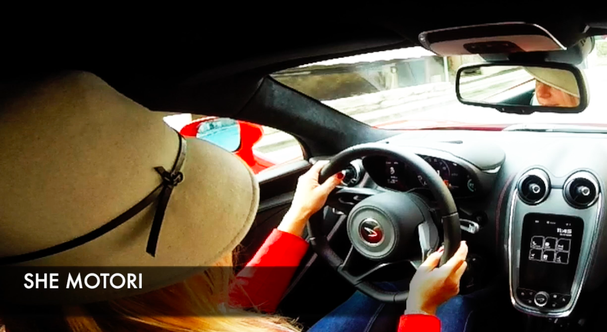 Posizione di guida regolata, mani alla nove e un quarto, guidiamo la McLaren 540C. Qualcuno pensa che una donna “sta male” al volante di una supercar? Si sbaglia!