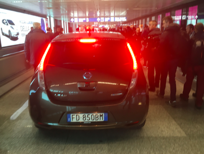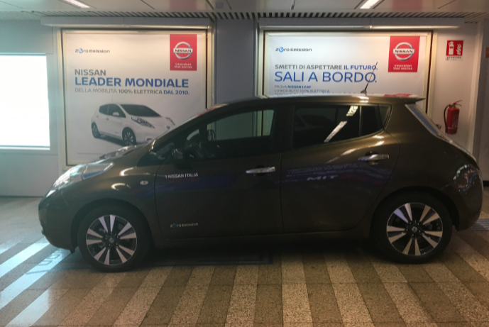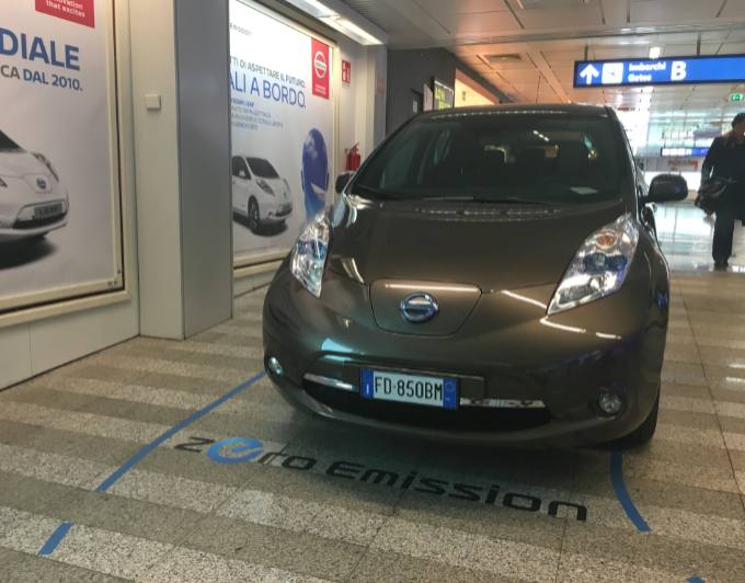 L’Energia decolla a bordo della Nissan Leaf a Fiumicino Airport.