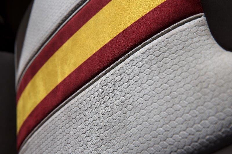 Anche il pannello porta riprende il motivo in Alcantara® goffrato effetto “Tricot” color panna con impunture beige, che evoca inequivocabilmente l’eleganza senza tempo delle atmosfere alpine.