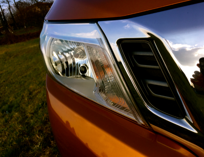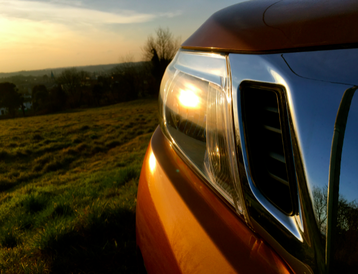 Il suo frontale così massiccio ma non troppo esagerato piace. Poi questo colore orange brillante, ci si fa notare, e dà un tocco di personalità..richiama anche il colore delle dune del deserto, un terreno sicuramente non per tutti, ma per il Navara si!