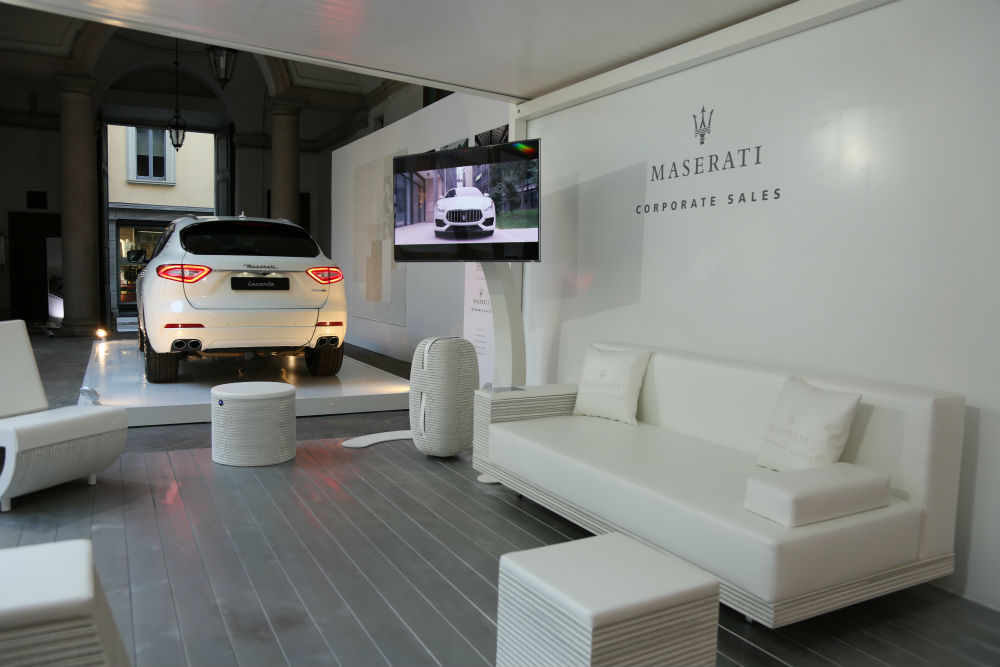 Maserati ha scelto di esporre Maserati Levante a Palazzo Cusani, uno degli edifici più prestigiosi di Milano, dove da anni si svolgono i più importanti eventi Fuorisalone della città. Il primo SUV della Casa Modenese può essere ammirato durante la Design Week nel colore bianco Alpi che richiama il concetto di White in The City: il bianco come simbolo di benessere e purezza, in un contesto che coinvolge architettura, arti visive, design, moda e, grazie alla presenza di Maserati, anche il settore automotive.