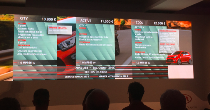 La Kia Picanto è proposta in tre livelli di allestimento, City, Active e Cool, parte con un’offerta di lancio con uno sconto base di 1.500 euro mentre chi è già cliente Kia può aggiungere altri 500 euro e il pacchetto manutenzione di 36 mesi se si utilizza un finanziamento. Per la GT Line, invece, l’offerta prevede un anticipo del 30% e una rata di 100 euro per 36 mesi per poi decidere se tenere l’auto o sostituirla. Non dimentichiamo infine i 7 anni di garanzia!