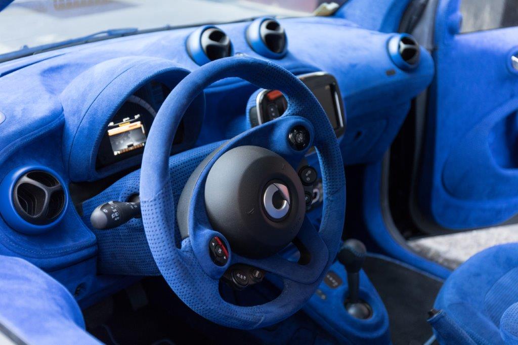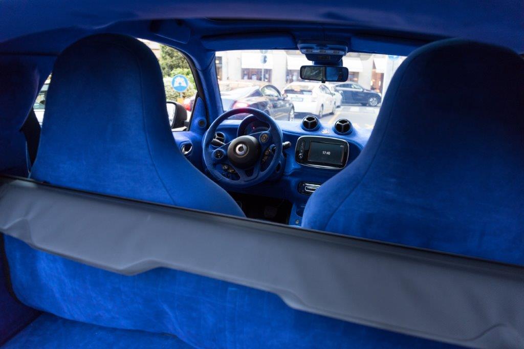 L’auto viene completamente rivestita in Alcantara®, la rimontiamo, la testiamo e poi la mettiamo in vendita. La nostra caratteristica peculiare è quella di vendere solo on line su thearsenale.com, la piattaforma web che lanciamo oggi in Italia. La possiamo consegnare ovunque nel mondo e il costo per questo specifico esemplare, inclusa la consegna, è di 35.000 euro. Io amo Alcantara® da sempre per la sua versatilità ed eleganza contemporanea. In questi anni ho realizzato oltre 17 automobili diverse, tutte speciali, ed ognuna di esse aveva un abito in Alcantara®. Per questa smart abbiamo scelto un blu elettrico molto luminoso e anche inconsueto per guidare in città”.