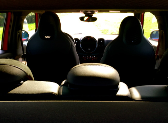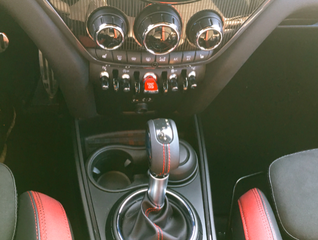 Per esempio abbiamo notato che sia le porte anteriori che posteriori sono dotate di scomparti che offrono spazio a bottiglie da un litro. Nella generosa consolle centrale che si estende fino alla plancia portastrumenti, davanti alla leva del cambio o del selettore di marcia sono stati ricavati una vaschetta porta-oggetti e due porta-bevande. Anche il MINI Controller e il comando elettrico del freno di stazionamento sono inseriti nella consolle centrale.
