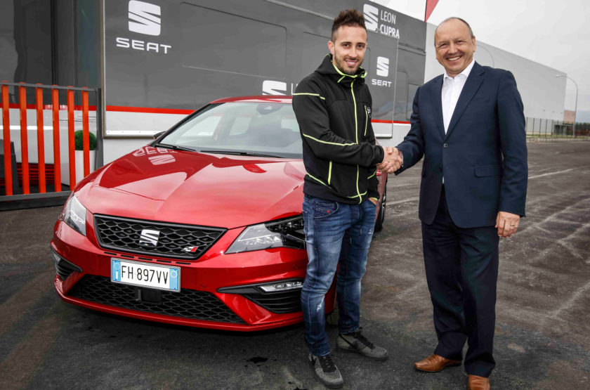 Andrea Dovizioso, il pilota di MotoGP, riceve in Italia la sua SEAT Leon CUPRA, auto ufficiale del Team Ducati in questa stagione di MotoGP