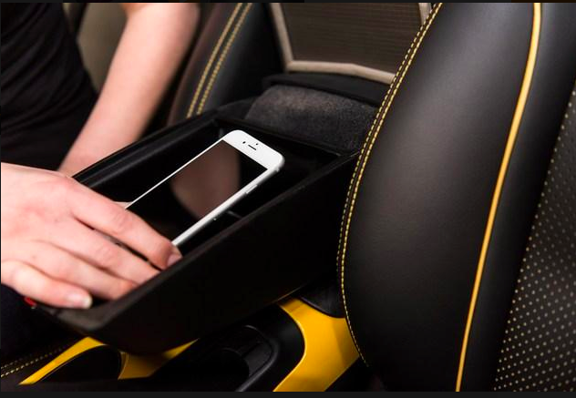 Per ripristinare la connettività wireless del telefono, è sufficiente aprire il bracciolo del veicolo (un’operazione che si compie facilmente, senza staccare gli occhi dalla strada né toccare il telefono) e lo smartphone si ricollega alla rete mobile e al Bluetooth di bordo.