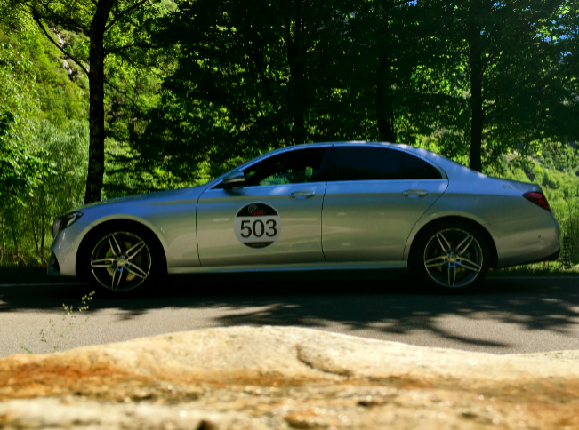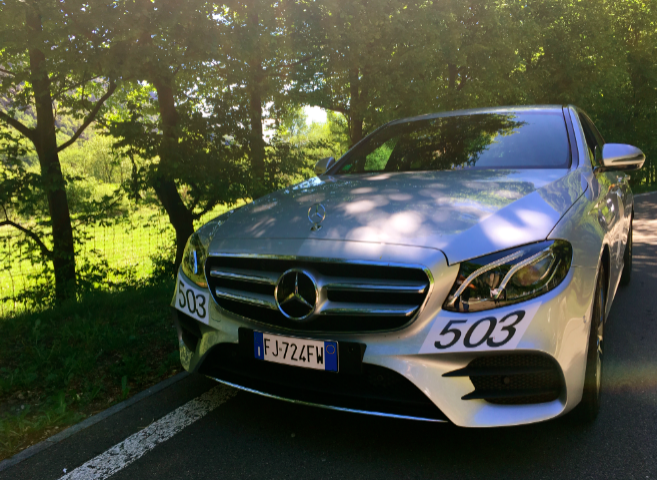 La nostra porta il numero 503, perchè durante questa prova saremo anche noi in “competizione” con una prova di regolarità, con tanto di tempi, e prove speciali… questa cosa ci rende ancora più vicini a prender confidenza con la nostra Classe E, da subito cerchiamo di capire tutta la tecnologia che poi aiutarci ad un migliore i risultato le coordinate, la velocità media, il tempo…il display di fronte a noi ci ruba subito lo sguardo, stratosferico bello da vedere e da utilizzare, pensate 12,3 pollici tutti per noi.