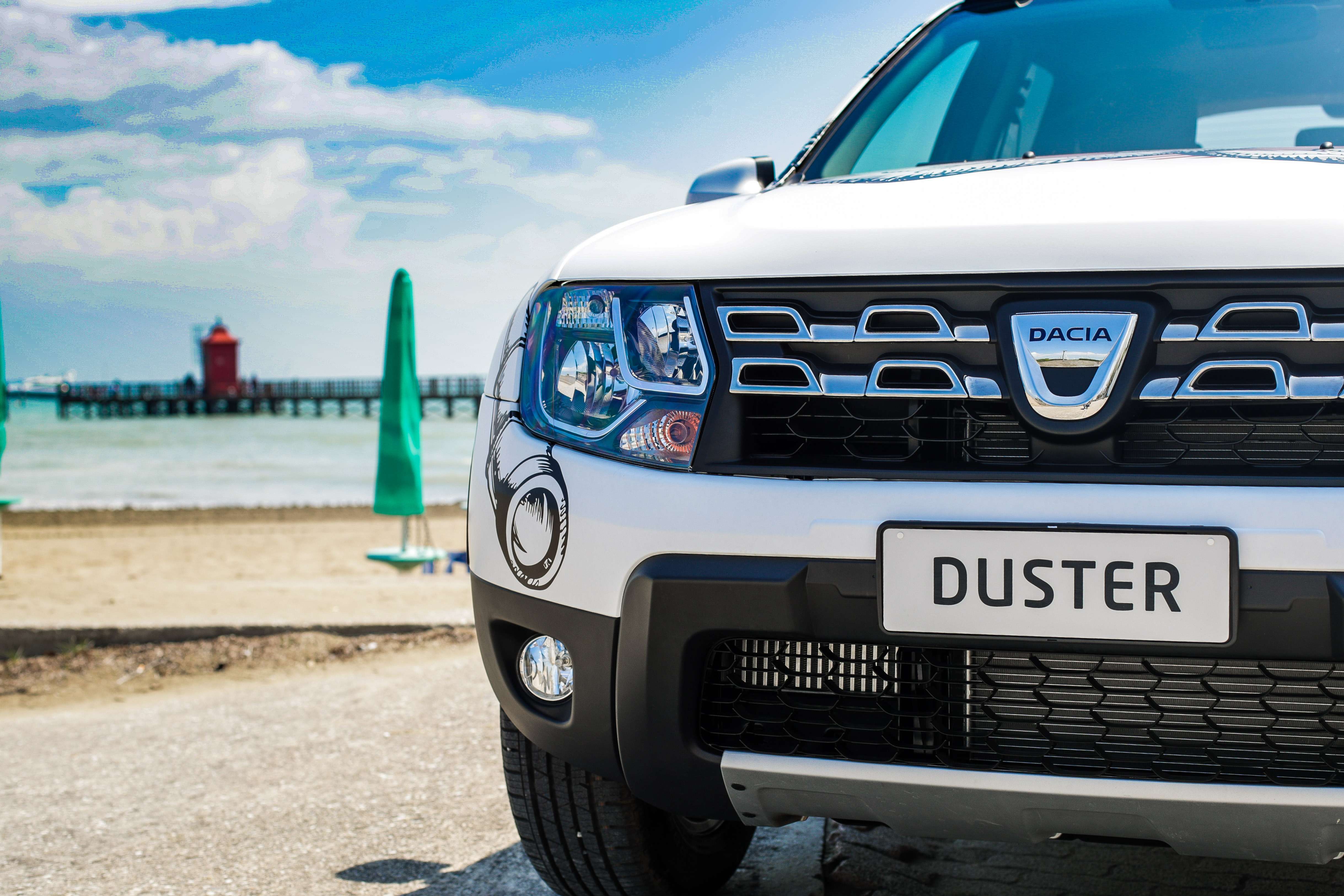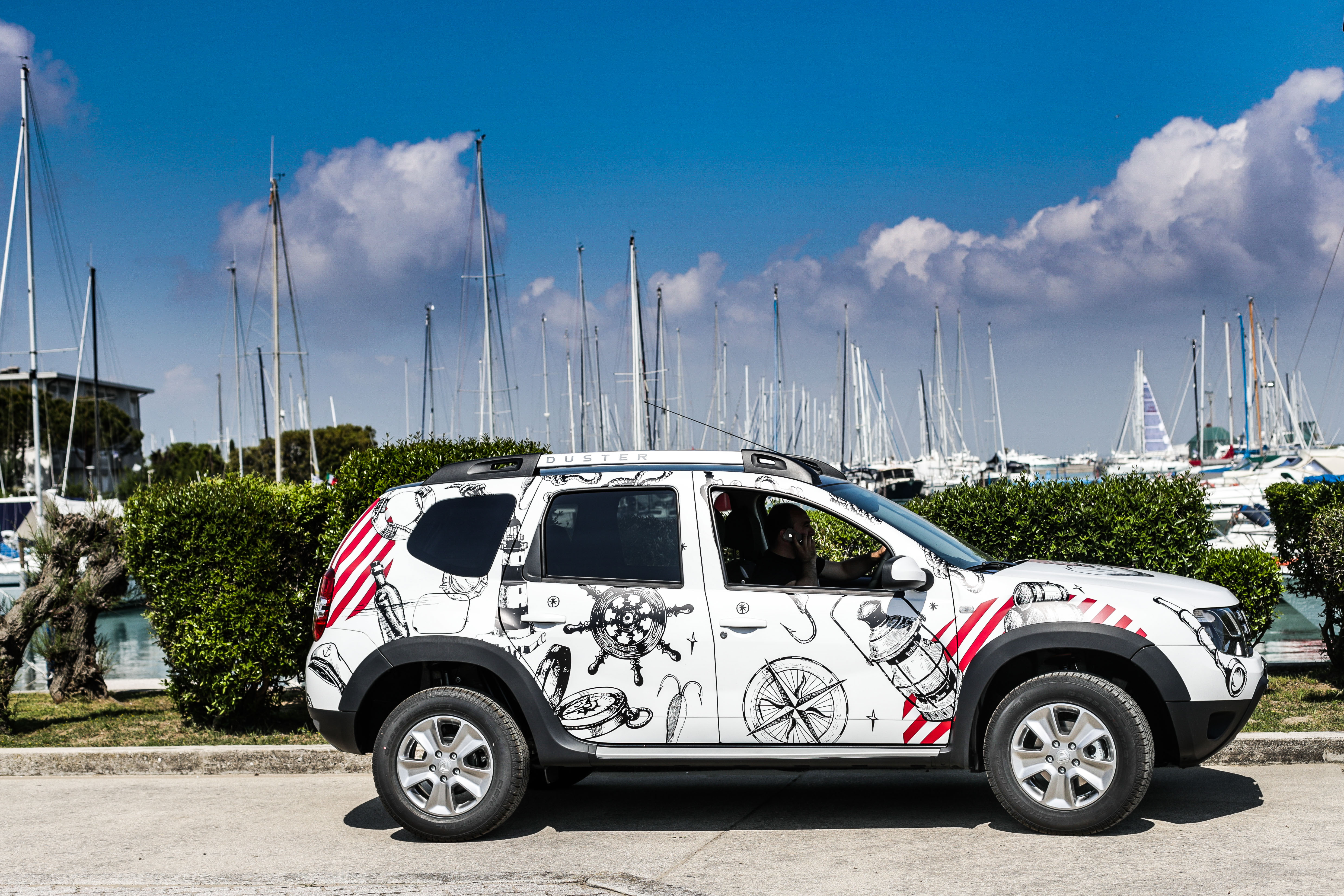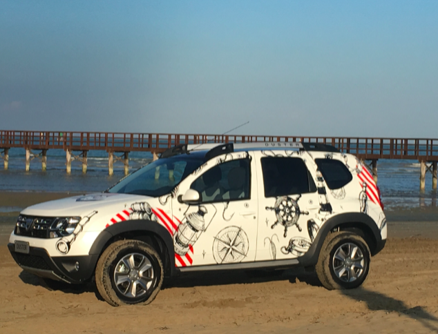Duster Strongman si presenta con un look esclusivo da showcar, caratterizzato da un car wrapping bianco opaco con tetto nero a contrasto e una personalizzazione che si ispira al tema marinaro, molto vicino al mood delle famose caramelle Fisherman’s Friend. Inoltre, il design esterno anteriore si caratterizza per i seguenti dettagli: protezioni sottoscocca satinate, pedane laterali, protezioni passaruota e cerchi in lega da 16’’ dark metal. Mentre il design esterno posteriore è riconoscibile attraverso barre tetto dark metal, vetri oscurati, terminale di scarico cromato, soglia bagagliaio, protezioni sottoscocca satinate e l’esclusivo badge “Fisherman’s Friend StrongmanRun” posto sul portellone posteriore.