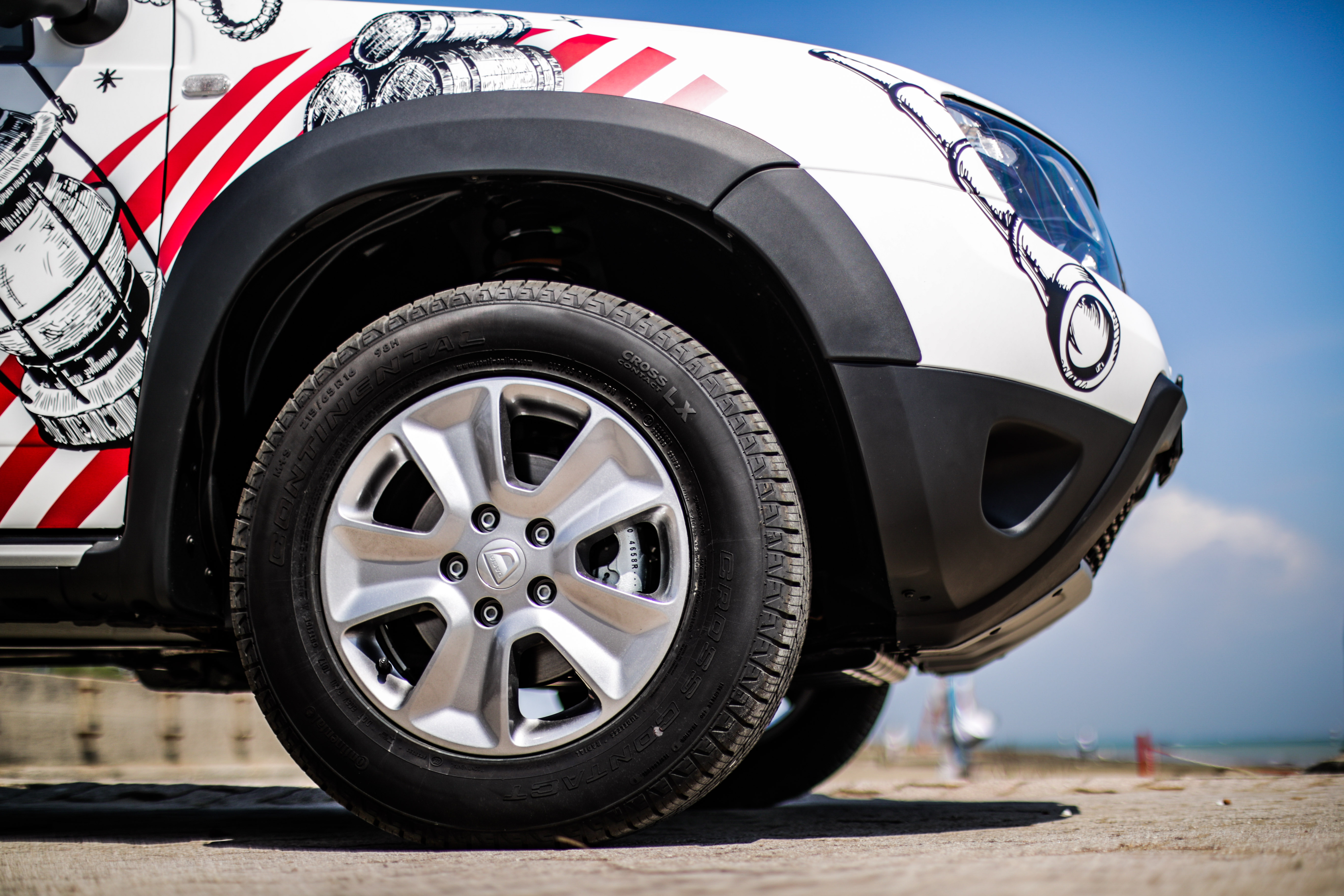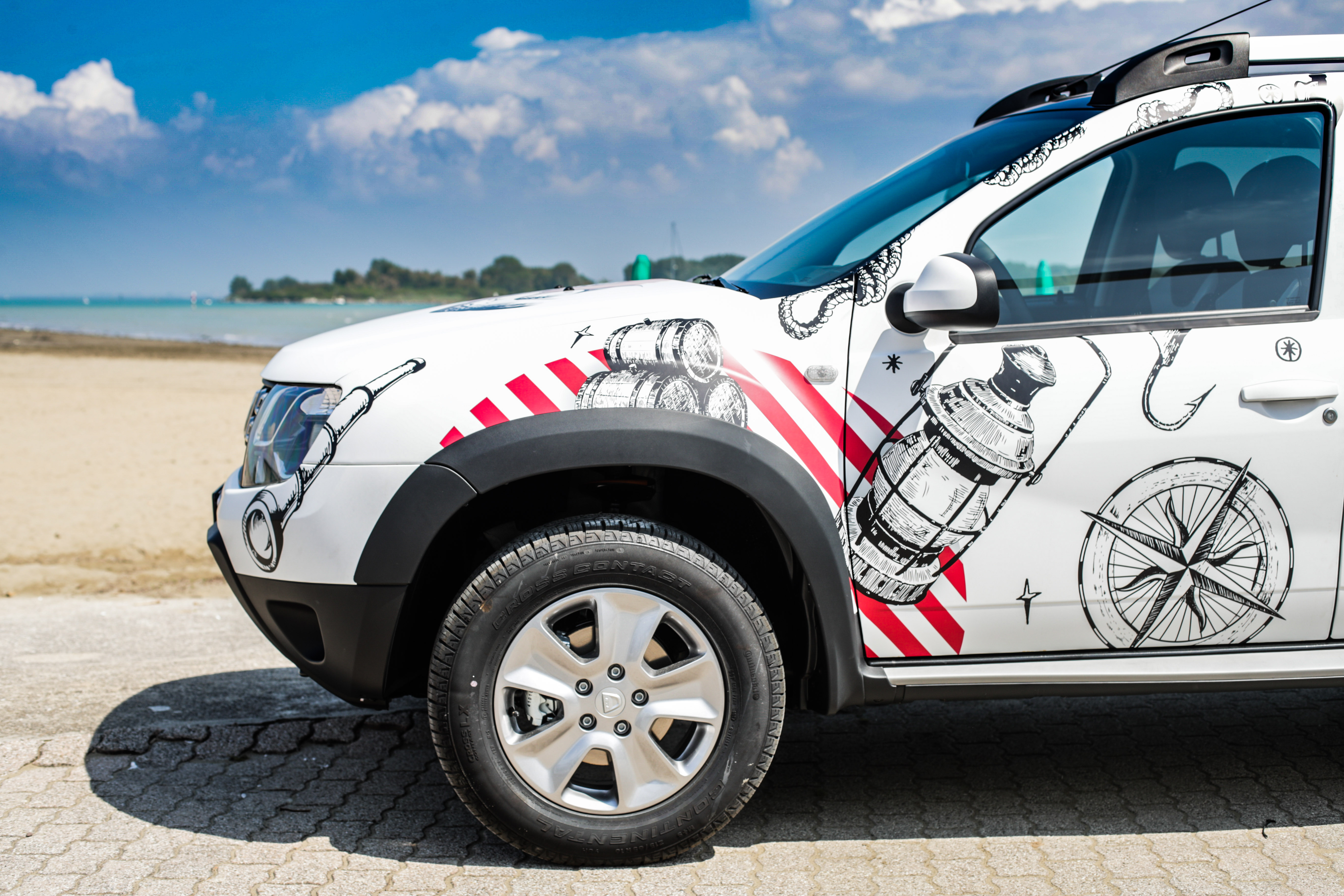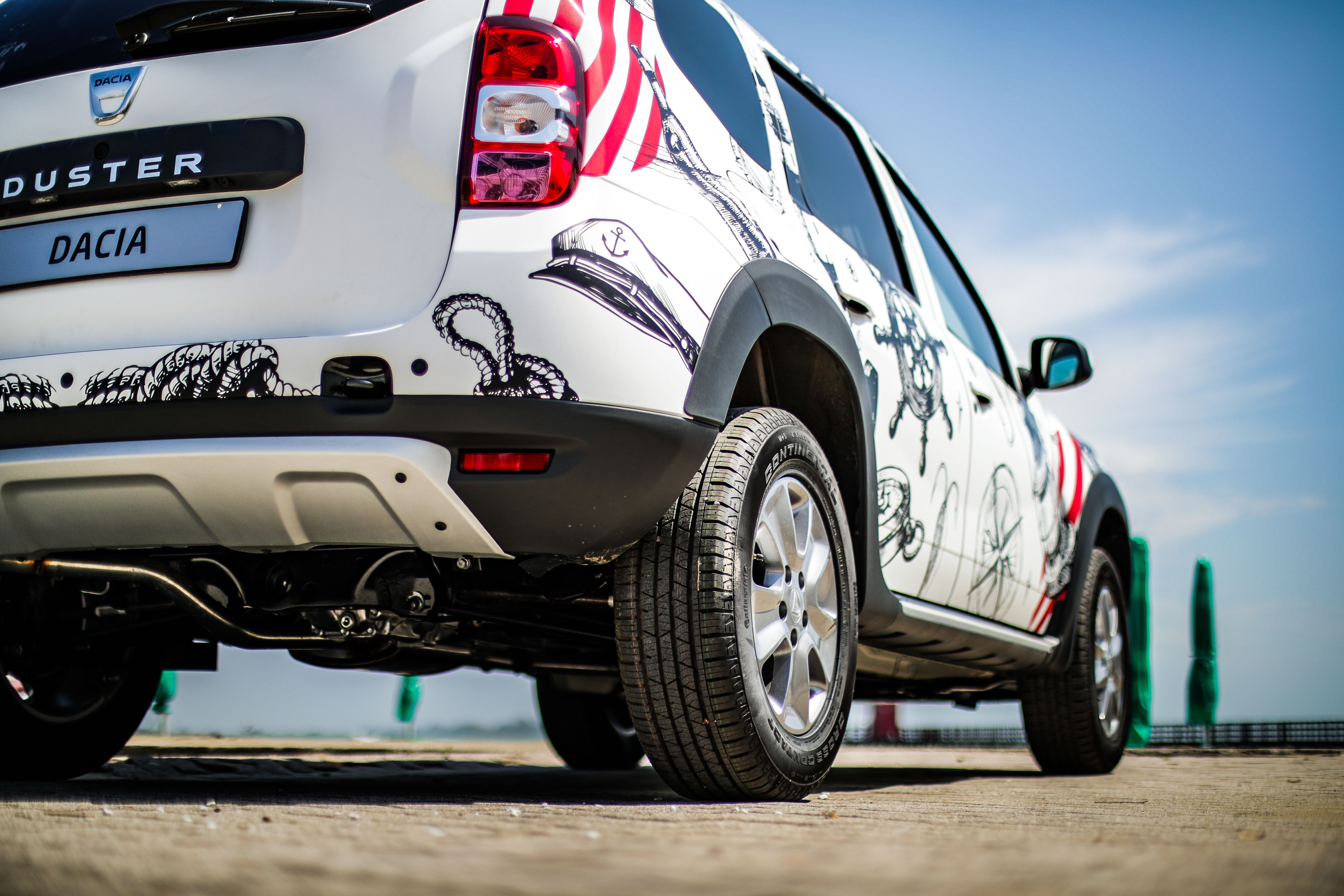 Duster Strongman si presenta con un look esclusivo da showcar, caratterizzato da un car wrapping bianco opaco con tetto nero a contrasto e una personalizzazione che si ispira al tema marinaro, molto vicino al mood delle famose caramelle Fisherman’s Friend. Inoltre, il design esterno anteriore si caratterizza per i seguenti dettagli: protezioni sottoscocca satinate, pedane laterali, protezioni passaruota e cerchi in lega da 16’’ dark metal. Mentre il design esterno posteriore è riconoscibile attraverso barre tetto dark metal, vetri oscurati, terminale di scarico cromato, soglia bagagliaio, protezioni sottoscocca satinate e l’esclusivo badge “Fisherman’s Friend StrongmanRun” posto sul portellone posteriore.