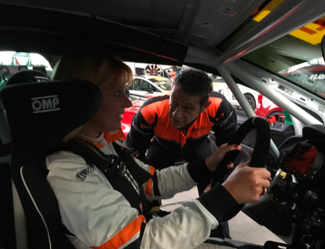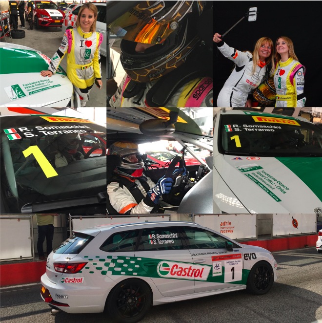 Per Rachele è la prima volta al volante della SEAT Leon ST Cupra, di una macchina con le dimensioni non indifferenti, rispetto alla sua MINI, in gara al campionato MINI Challenge, ma appena sale a bordo e sistema per bene il sedile con una cascata di cuscini, è subito feeling.