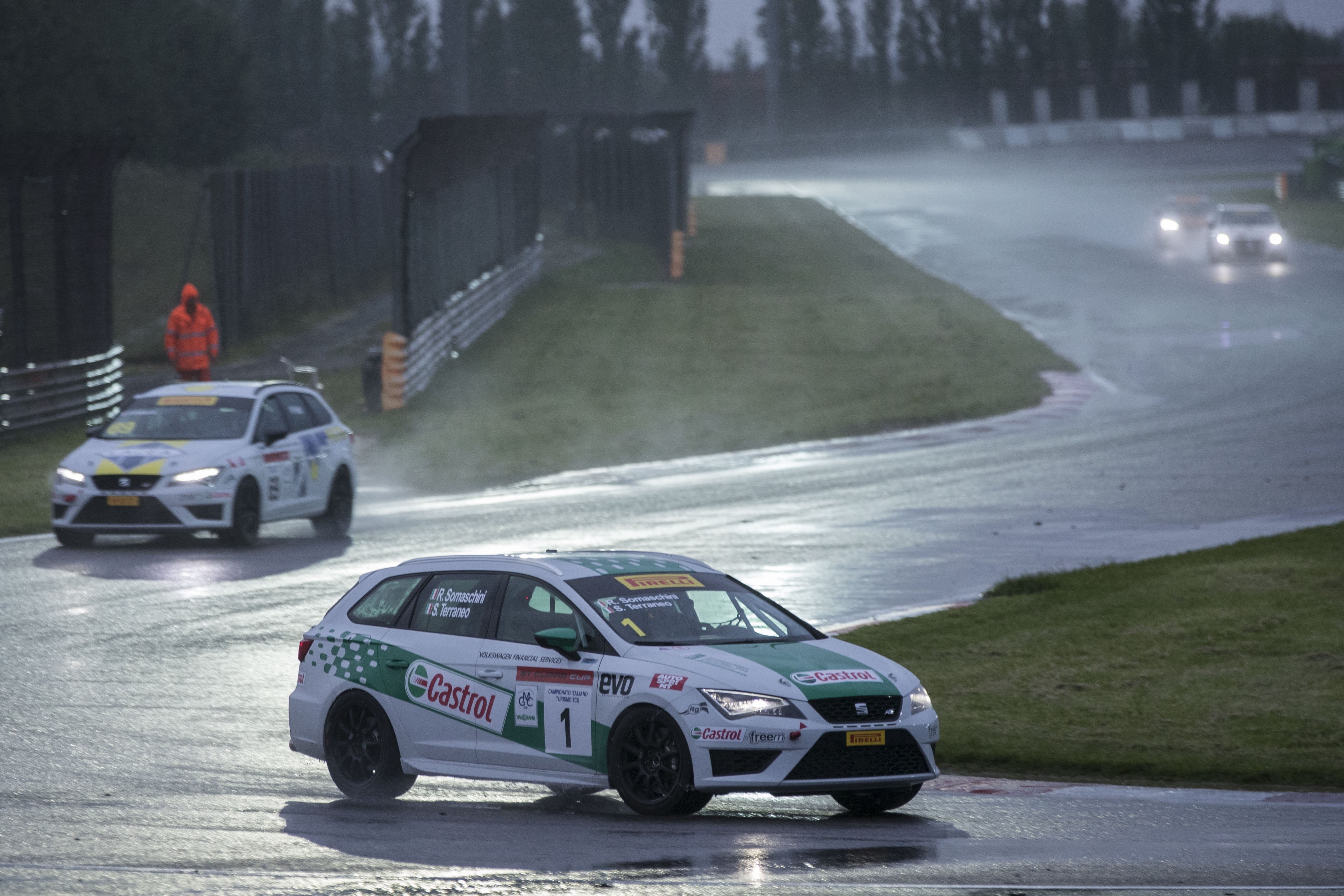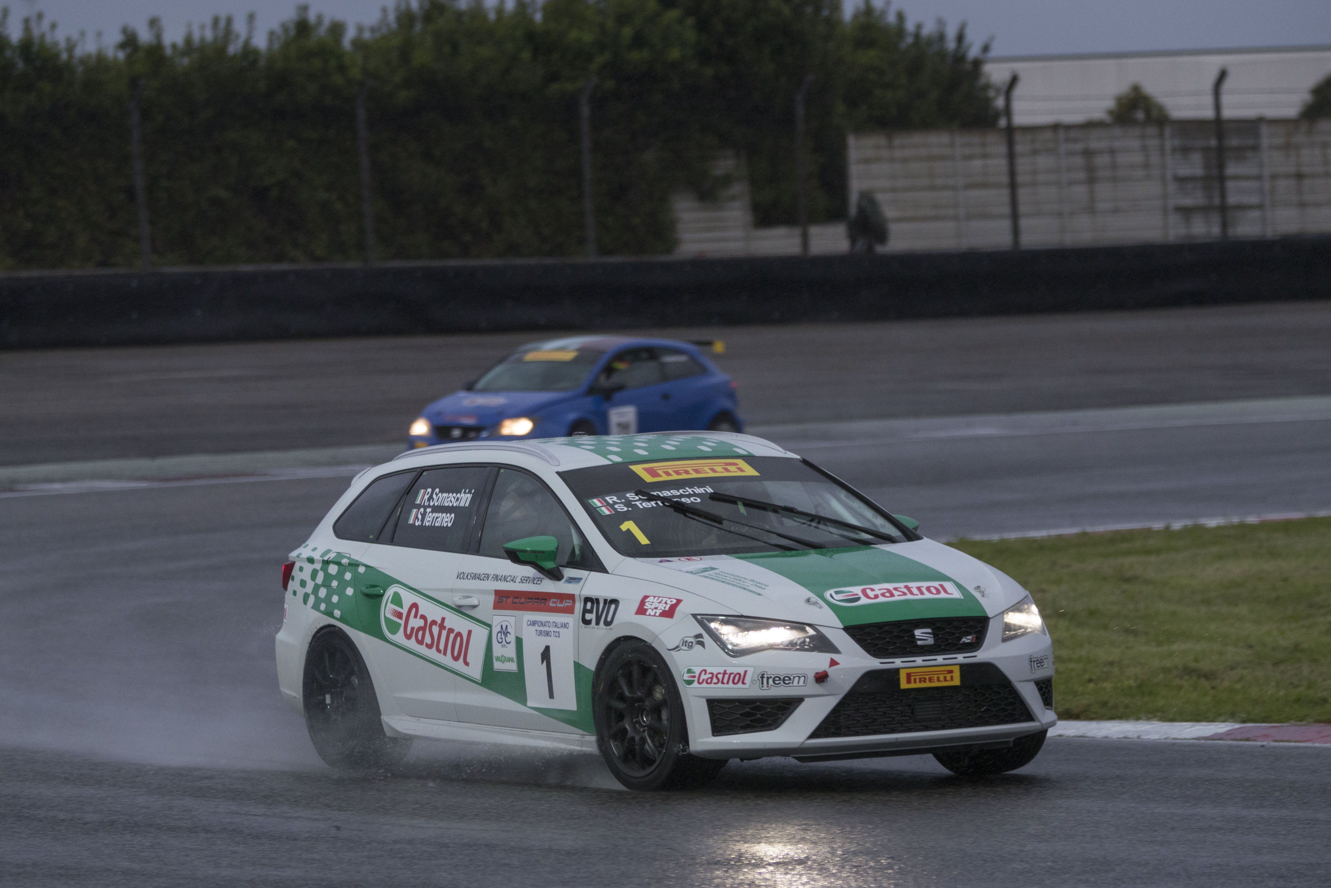 Sta per arrivare un ciclone in piena per la GARA 1, Rachele sarà protagonista, la pista diventa un torrente in piena e la nostra SEAT Leon Cupra ST guidata da Rachele si trasforma in un salmone che rincorre, saltellando via tutti gli altri, la salita…dopotutto lei di salite ne sa qualcosa… una gara bellissima da vedere, da sentire, davanti a me ancora le immagini dei sorpassi delle onde, e di tutte quelle vetturette che correvano veloci a cercar il tempo…