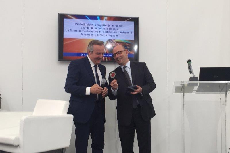 Durante il convegno che si è svolto in Autopromotec, dal titolo “Prodotti sicuri e rispetto delle regole: le sfide di un mercato globale”, in cui la filiera dell’automotive e le Istituzioni hanno illustrano il fenomeno cercando risposte praticabili ed efficaci, il Prefetto Roberto Sgalla, Direttore delle Specialità della Polizia, ha conferito un premio ad Assogomma per l’impegno che, in questi 15 anni di attività, hanno visto l’Associazione impegnata a favore della sicurezza stradale.