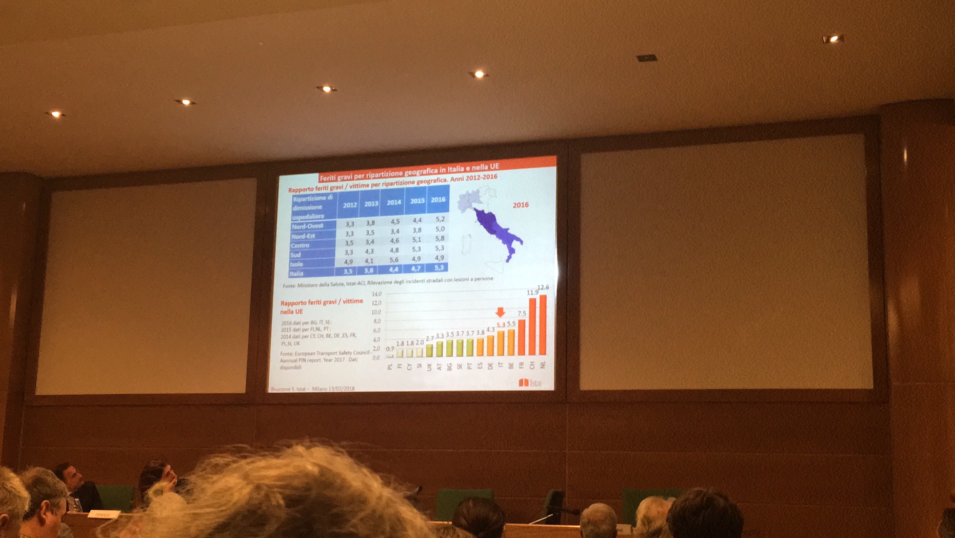 Silvia Bruzzone, responsabile Rilevazione nazionale degli incidenti stradali dell’Istat, dopo aver ricordato come nel 2016 in Lombardia gli incidenti stradali siano stati 32.785 causando 434 morti e 45.435 feriti, ha evidenziato come il maggior numero di incidenti si sia verificato in ambito urbano (25.879, il 78,9% del totale) con 234 morti e 34.416 feriti.