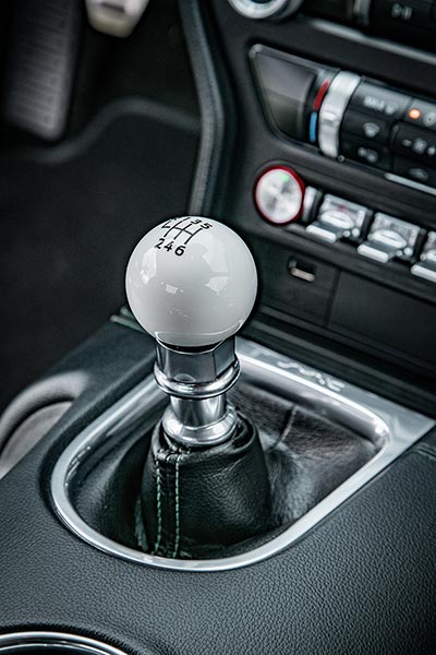 La Mustang BULLIT Limited Edition è equipaggiata con un cambio manuale a sei rapporti, con la nuova tecnologia rev-matching di Ford, che utilizza il sistema di controllo elettronico del motore per sincronizzare l’acceleratore mentre il guidatore scala la marcia verso il basso, facendo corrispondere la velocità di rotazione del motore a quella del rapporto selezionato, per cambi di marcia fluidi e precisi.
