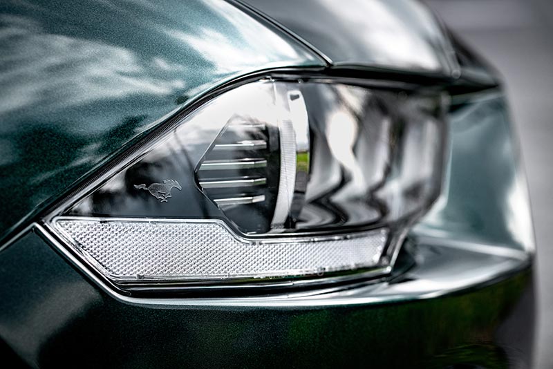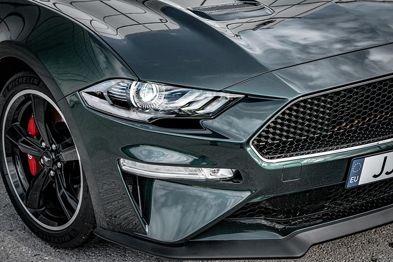 La terza generazione della Mustang BULLIT segue le orme dei precedenti modelli del 2001 e 2008, equipaggiati con motori potenti, cerchi Torq Thrust-style, dettagli distintivi e scelte predefinite per le tonalità degli esterni, tra cui il Dark Highland Green.