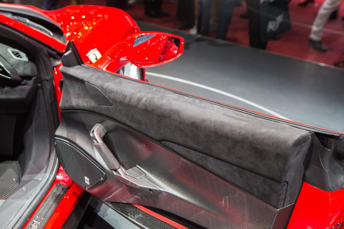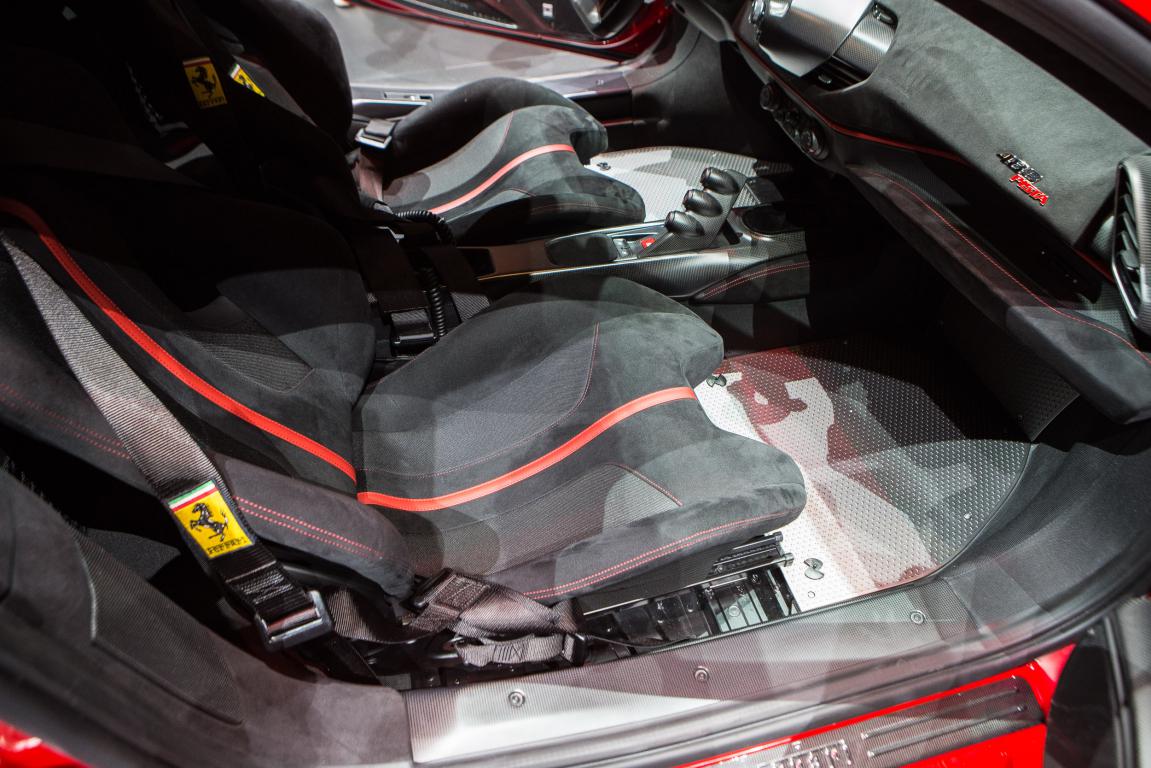Così nell’abitacolo l’atmosfera è squisitamente racing, con Alcantara® in abbinamento alla fibra di carbonio per creare un insieme perfetto di artigianalità e raffinatezza tipica degli interni Ferrari.