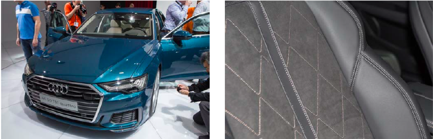 Audi ha scelto il materiale “Made in Italy” per la quinta generazione della Audi A6, che ha i pannelli porta rivestiti in Alcantara, così come Peugeot non ha scelto il fascino del tailor made italiano per personalizzare la 508 First Editon, in cui Alcantara riveste i sedili sportivi nella parte centrale della seduta e nello schienale, caratterizzandone il design con una trama di impunture a losanghe.