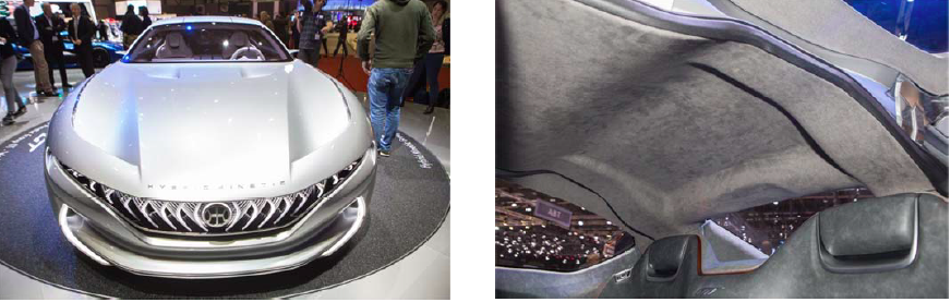 Infine anche Pininfarina ha scelto Alcantara, sviluppando al massimo le possibilità di personalizzazione offerte dal materiale italiano e creando un grande binomio del made in Italy. Nella concept car H2 Speed Alcantara è stata utilizzata sia per rivestire integralmente la plancia che per personalizzare i sedili.