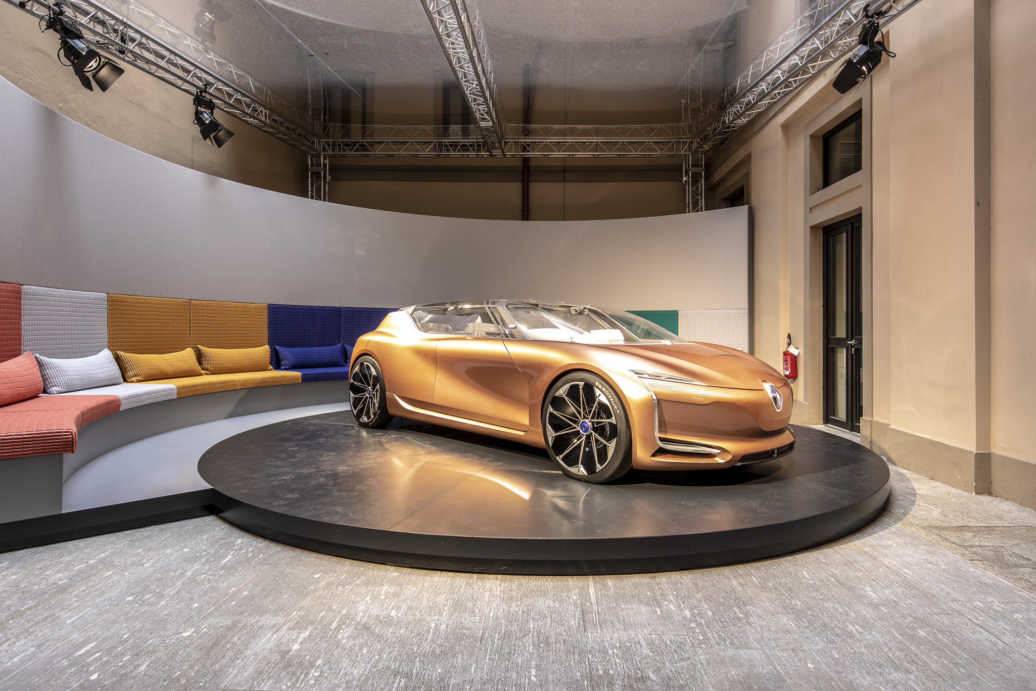 Renault è presente attraverso l’esposizione della concept-car Renault SYMBIOZ in partnership con la creatrice di tessuti Alexandra GACA, presso il padiglione dei designer olandesi a Palazzo Turati.