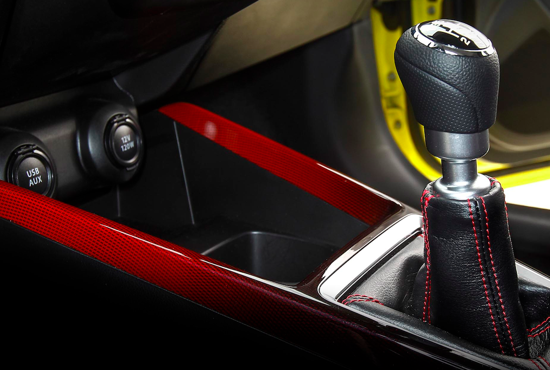 Ogni parte dell’auto che viene utilizzata dal pilota è studiata per essere funzionale e piacevole nell’impiego sportivo. La corona del volante a D con la pelle goffrata offre un’impugnatura salda, ed è caratterizzata da inserti satinati, dettagli neri laccati e cuciture rosse incrociate. Il pomello del cambio con parti cromate e i pedali sportivi in alluminio completano un ambiente stimolante e rifinito con cura.