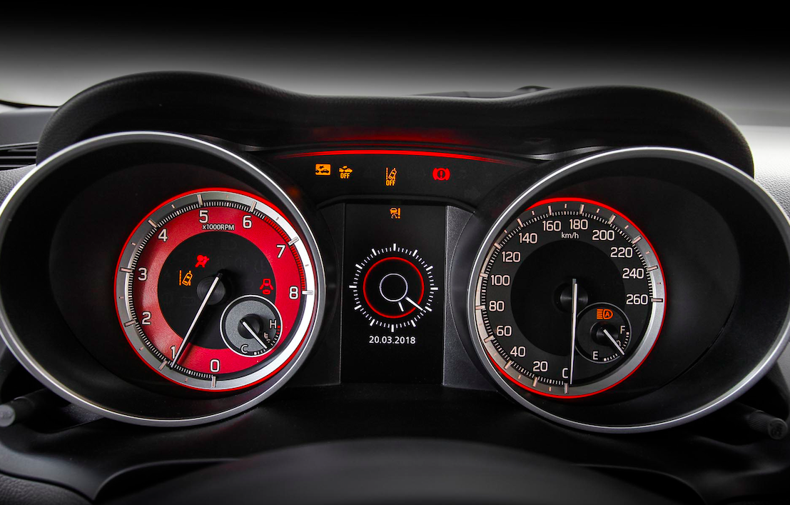 Gli interni di SWIFT Sport offrono al pilota un ambiente di guida coinvolgente e interattivo, a partire dagli inserti rossi e dal pannello strumenti dallo stile sportivo, inclinato verso il pilota. Gli strumenti principali spiccano grazie a vivaci colori in contrasto e i nuovi indicatori del turbo e della temperatura dell’olio esaltano l’esperienza di guida sportiva. I rivestimenti e i materiali adoperati nell’abitacolo sono di alta qualità e rifiniti con precisione. I sedili anteriori integrali di SWIFT Sport, inoltre, trattengono saldamente il pilota e il passeggero anteriore, anche nella guida più brillante.