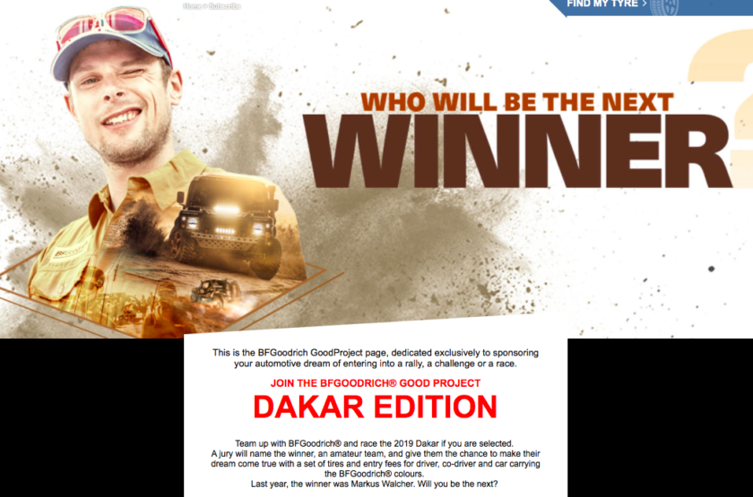 Per succedere a Marcus Walcher, vincitore del GoodProject 2017, BFGoodrich® selezionerà anche quest’anno un team amatoriale per partecipare al leggendario Rally Dakar 2019 attraverso il GoodProject 2018.