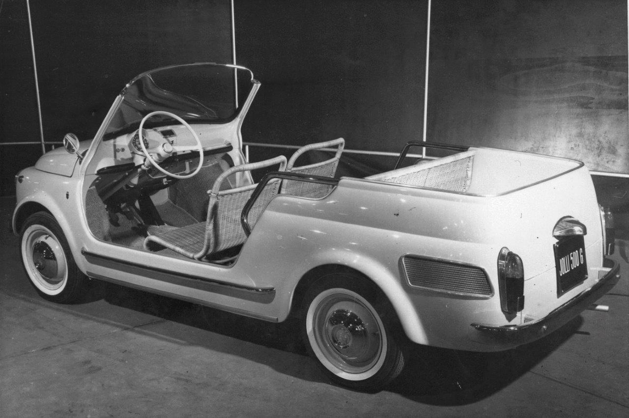 Appena un anno dopo il suo lancio, avvenuto il 4 luglio del 1957, la Fiat 500 diventa un vero e proprio oggetto cult con l’esordio della sua prima serie speciale: la 500 Jolly, più conosciuta come “Spiaggina”. Realizzata dalla Carrozzeria Ghia sulla base della Fiat 500, e poi anche sulle versioni Giardiniera, l’esclusiva vettura fu prodotta tra il 1958 e il 1965 e venduta in Europa, Stati Uniti e perfino in Sudafrica. Con un prezzo doppio rispetto alla versione normale, la speciale edizione da mare conquistò le personalità più influenti di quegli anni – tra cui l’armatore Aristotele Onassis e l’attore Yul Brynner – che la scelsero per imbarcarla sui loro yacht o per utilizzarla come “golf car” nelle loro tenute di prestigio. È possibile ammirare una 500 Jolly persino nella collezione personale dei veicoli del presidente Lyndon B. Johnson.