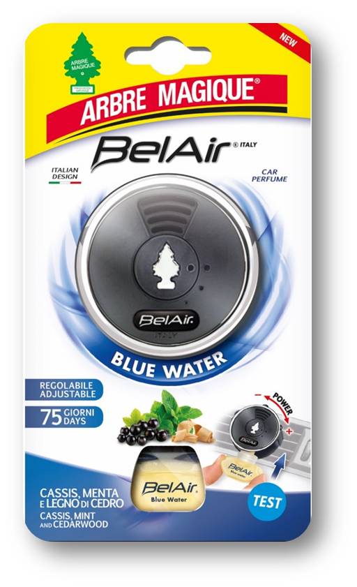 Dalla Linea BELAIR® GIUGIARO di ARBRE MAGIQUE®, arriva una nuova profumazione per auto che darà un tocco di originalità a tutti gli appassionati delle quattro ruote: Blue Water.