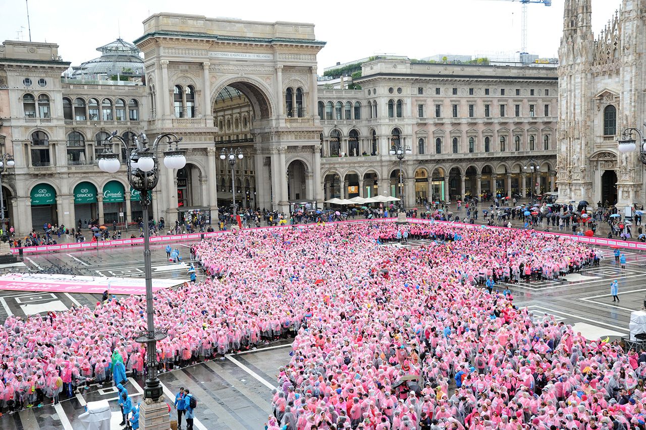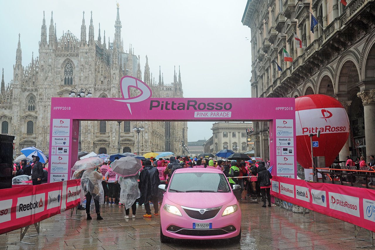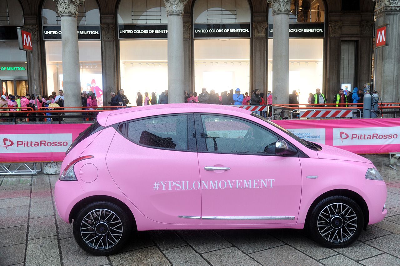 Ad aprire la corsa in piazza Duomo, una Ypsilon wrappata rosa dedicata alla ricerca.