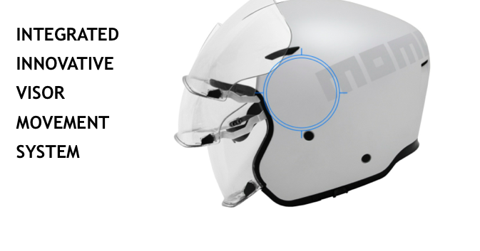 L’ampia visiera esterna Antiscratch e Antifog è stata realizzata a filo con la calotta. Eliminato il classico movimento visiera esterno, è stato progettato e brevettato un nuovo sistema visiera “patent pending” integrato nel casco.